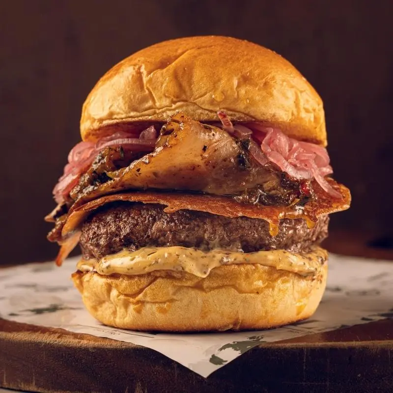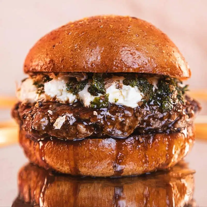 Descripción: Carne angus jugosa con costra crujiente de queso mozzarella, acompañada de cachete de cerdo horneado lentamente y laminado en casa, sobre pan de papa fresco hecho por nosotros, con chimichurri en dos texturas, una en cremosa mayonesa y otra dulce tipo relish, que intensifican su perfil con notas equilibradas y ligeramente acarameladas, finalizada con cebolla roja encurtida elaborada artesanalmente para lograr una hamburguesa profunda, jugosa y llena de carácter. 📍 Ubicación: Calle 4 #17-75