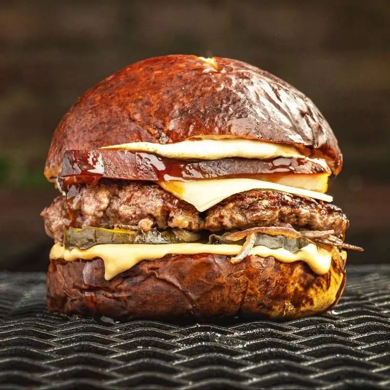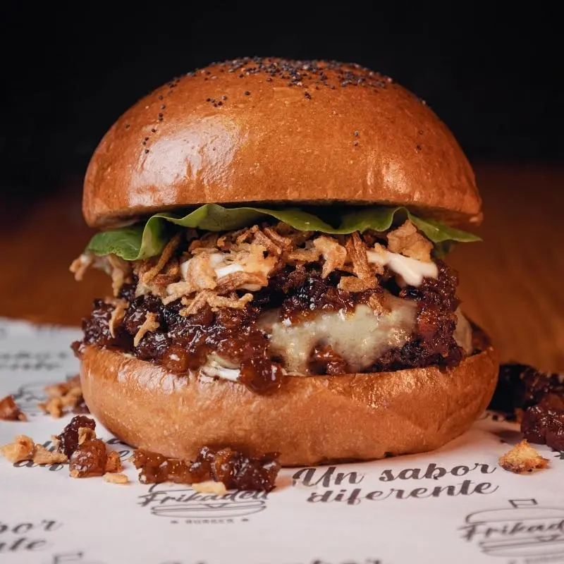 Descripción: ¡Hey brooo! Se viene una burger que no pide permiso y es puro pecado 150 g de nuestro poderoso blend brangus (¡ganado nacional, papá! ) con una brutal costra oklahoma style. Va sobre una crema de mayo de ajo y nuestros infaltables pepinillos. Un toque de fontina gratinado y fatbacon ahumado en miel de red pepper (made in pork). Rematamos con un glaseado jalea artesanal de guayaba y aguardiente (te va a volar la cabeza) y un cremoso de buttermilk con esencia de bacon, todo dentro de un legendario pan pretzel, papeee esto no es una burger… es un pecado capital entre dos panes 📍 Ubicación: Carrera 15 #1C-06, San Pablo, Zipaquirá