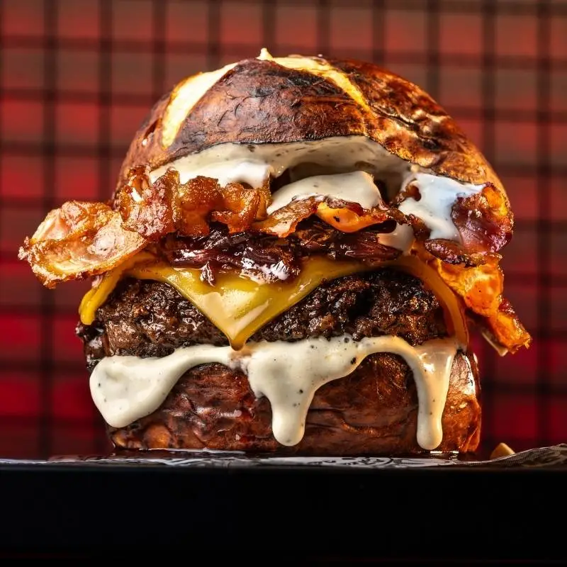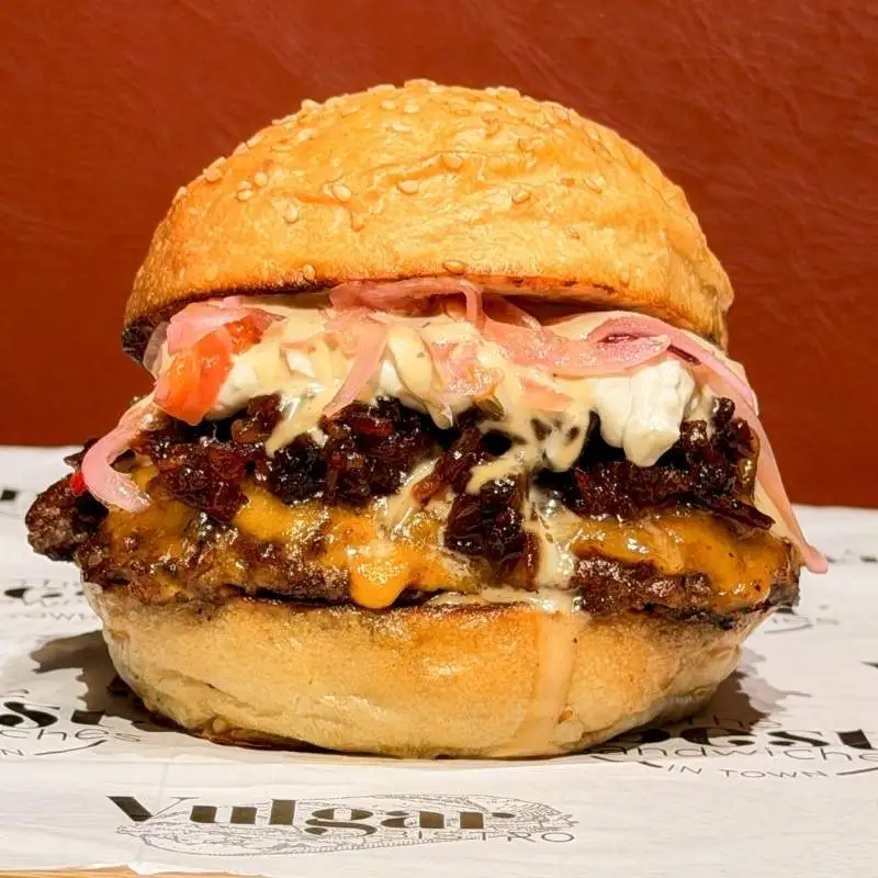 Descripción: Inspirada en la mejor hamburguesa de nueva york, esta propuesta demuestra que los clásicos no fallan. Pan tipo pretzel ligeramente tostado, carne 100% de res seleccionada de cortes lomo, chata y punta de anca, acompañada de doble queso cheddar americano fundido. Se complementa con cebollas confitadas durante horas en vino tinto merlot con un toque de orégano, logrando un sabor profundo y equilibrado que incluso sorprende a quienes no suelen disfrutar la cebolla, además de doble tocineta premium extra crocante y una salsa cremosa a base de suero costeño y ajo que envuelve cada bocado con intensidad y suavidad. La idea es vivir la fiesta del burger master al ritmo del perreo viejito, porque los clásicos nunca fallan, pero esta se vuelve adictiva. 📍 Ubicación: Calle 6 #17-23, Zipaquirá