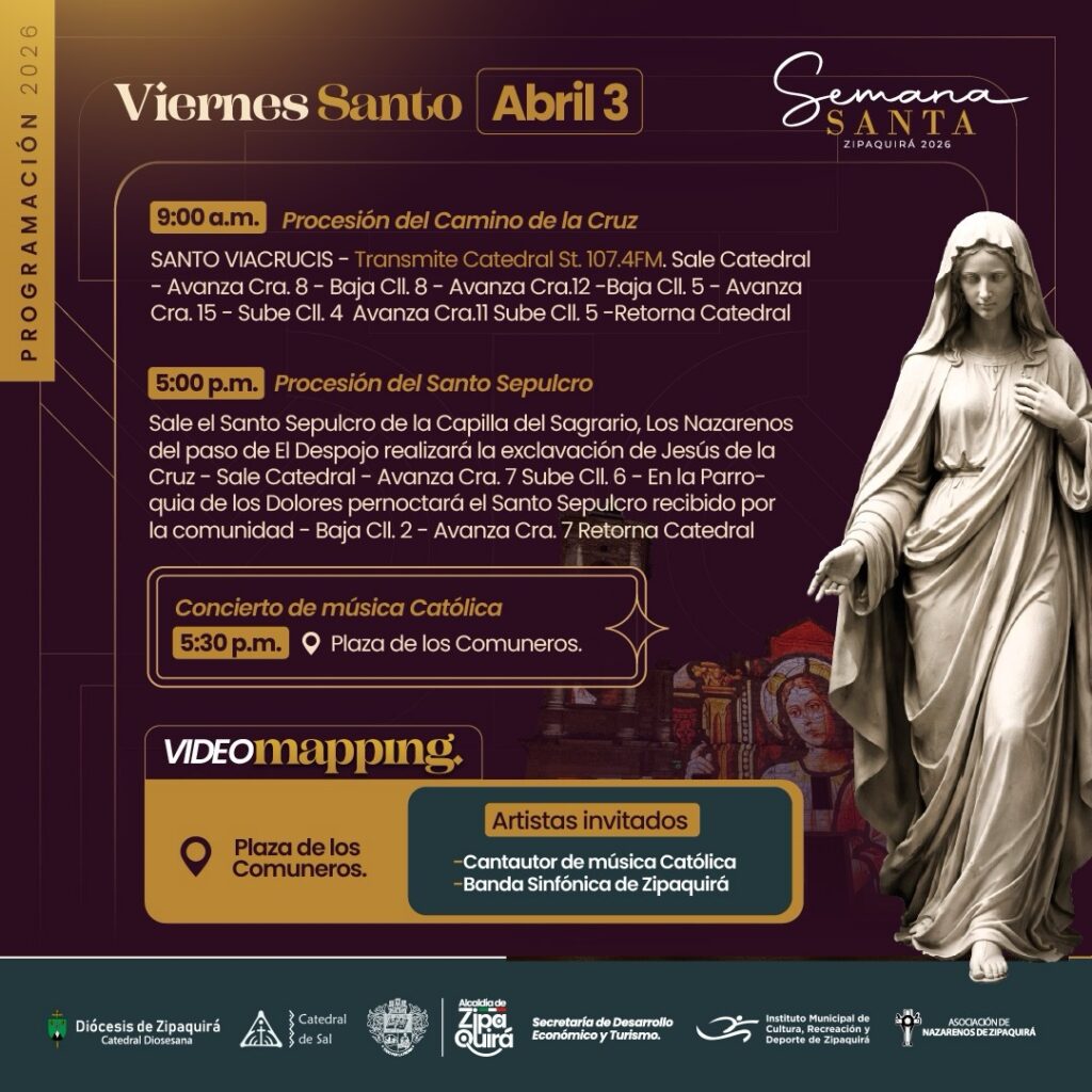 La programación de Semana Santa en Zipaquirá reúne espacios que permiten conectar con el significado espiritual de esta época, así como actividades que resaltan el patrimonio y la identidad cultural de la ciudad.
